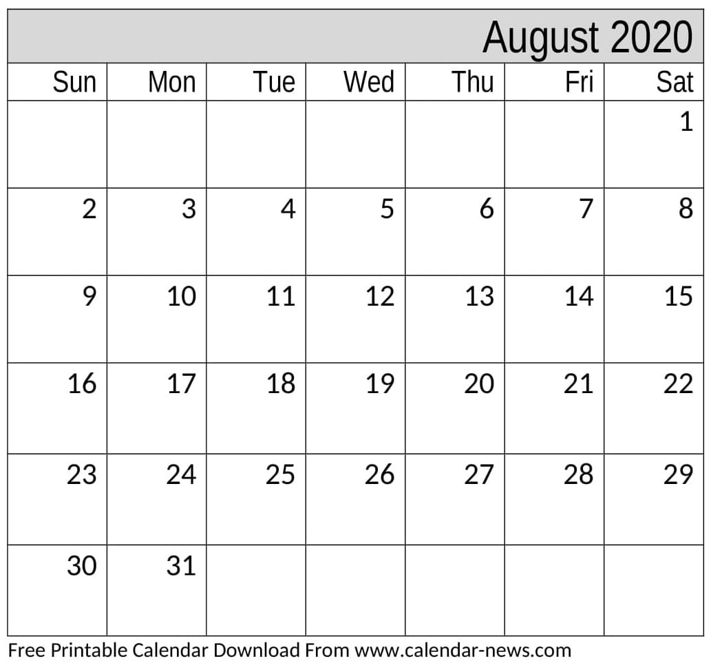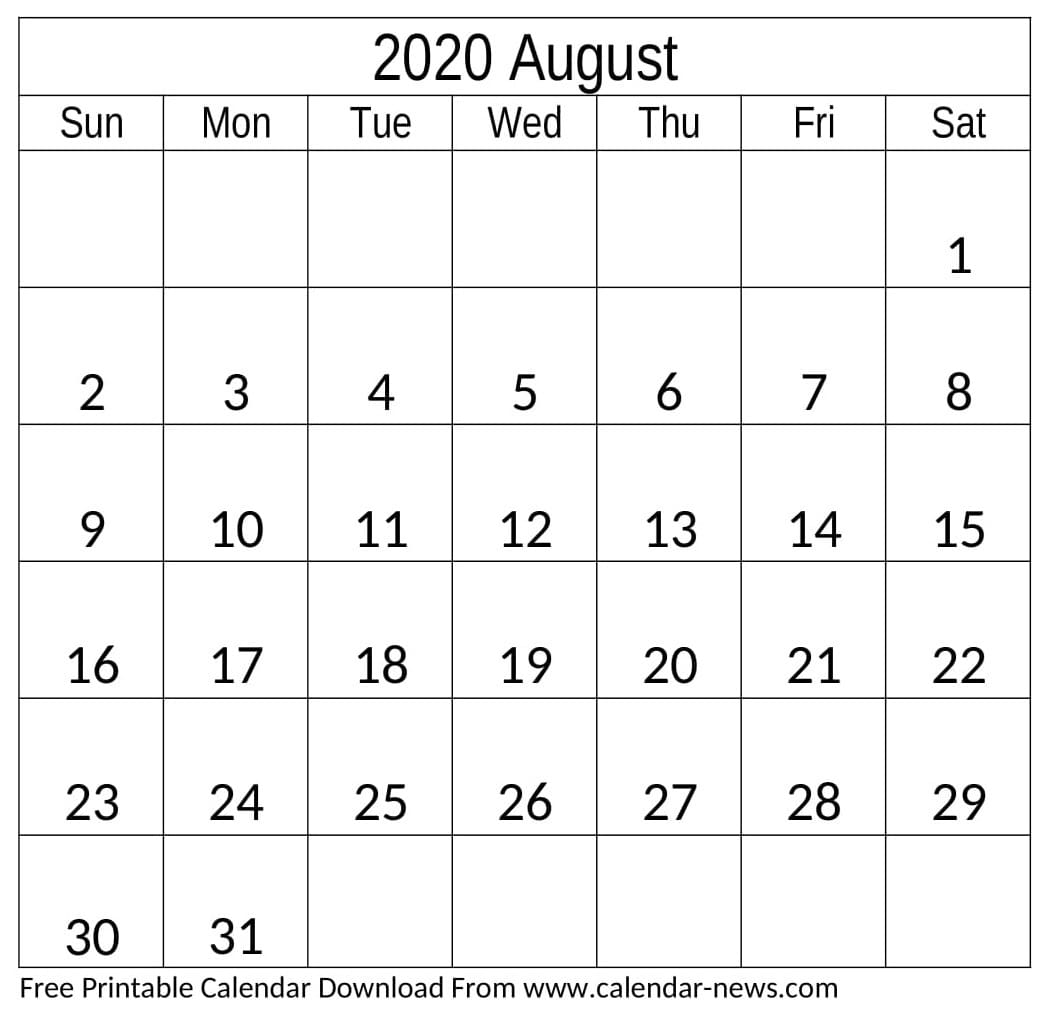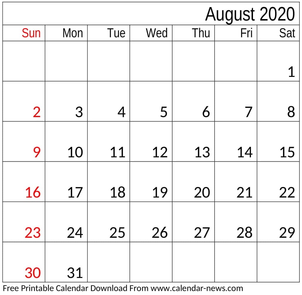 August 2020 Calendar