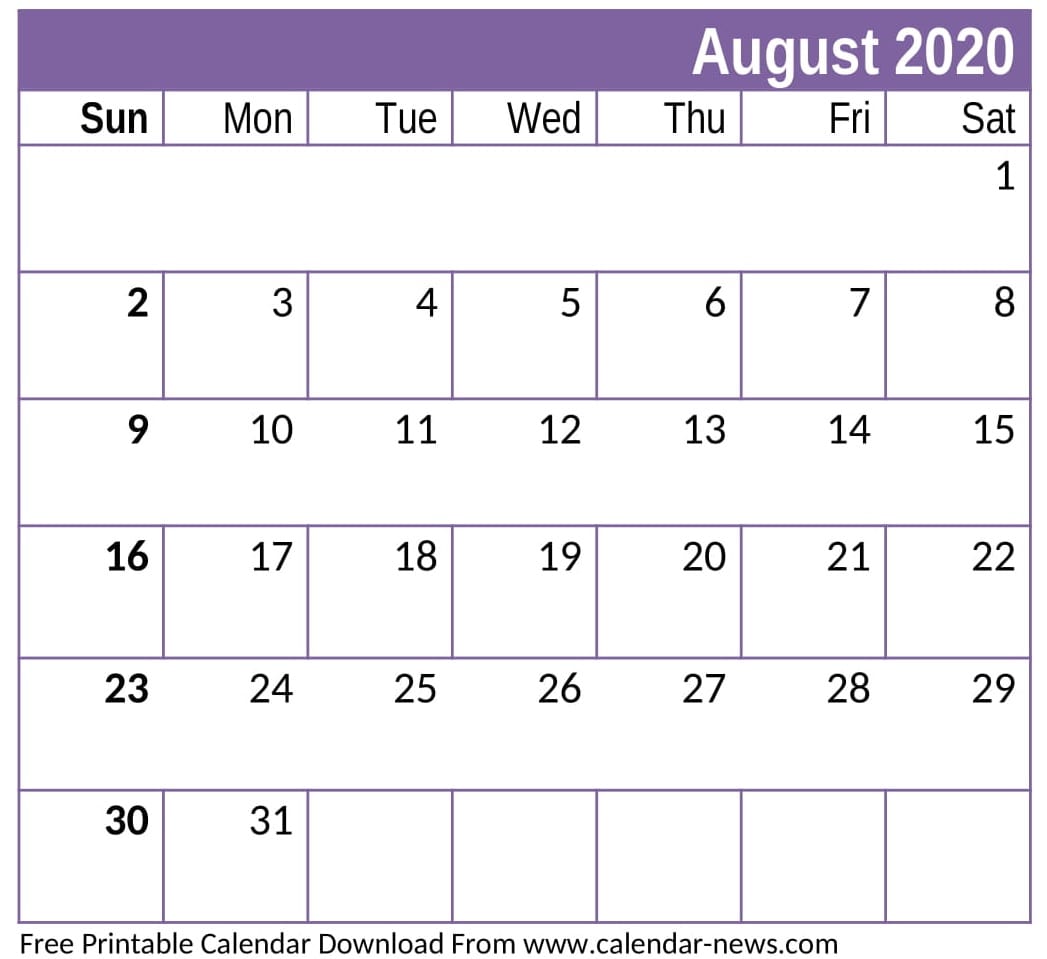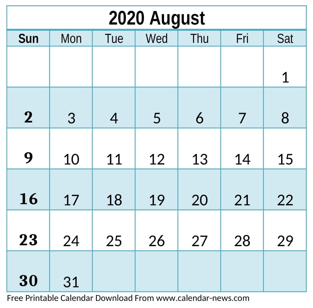 Free Printable August 2020 Calendar, You have all notices that August month comes between July and September. This Month With 31 days, it occupies its space in the Eight positions in the Gregorian Calendar. In the Roman calendar, it lies in the Sixth Position and comes from the Latin word Sextillis. August’s name comes from Augustus Caesar, who become the Roman Council in this Month. It never starts on the same day of the week, like any other month in the common years, but it ends on the same day of the week as November.