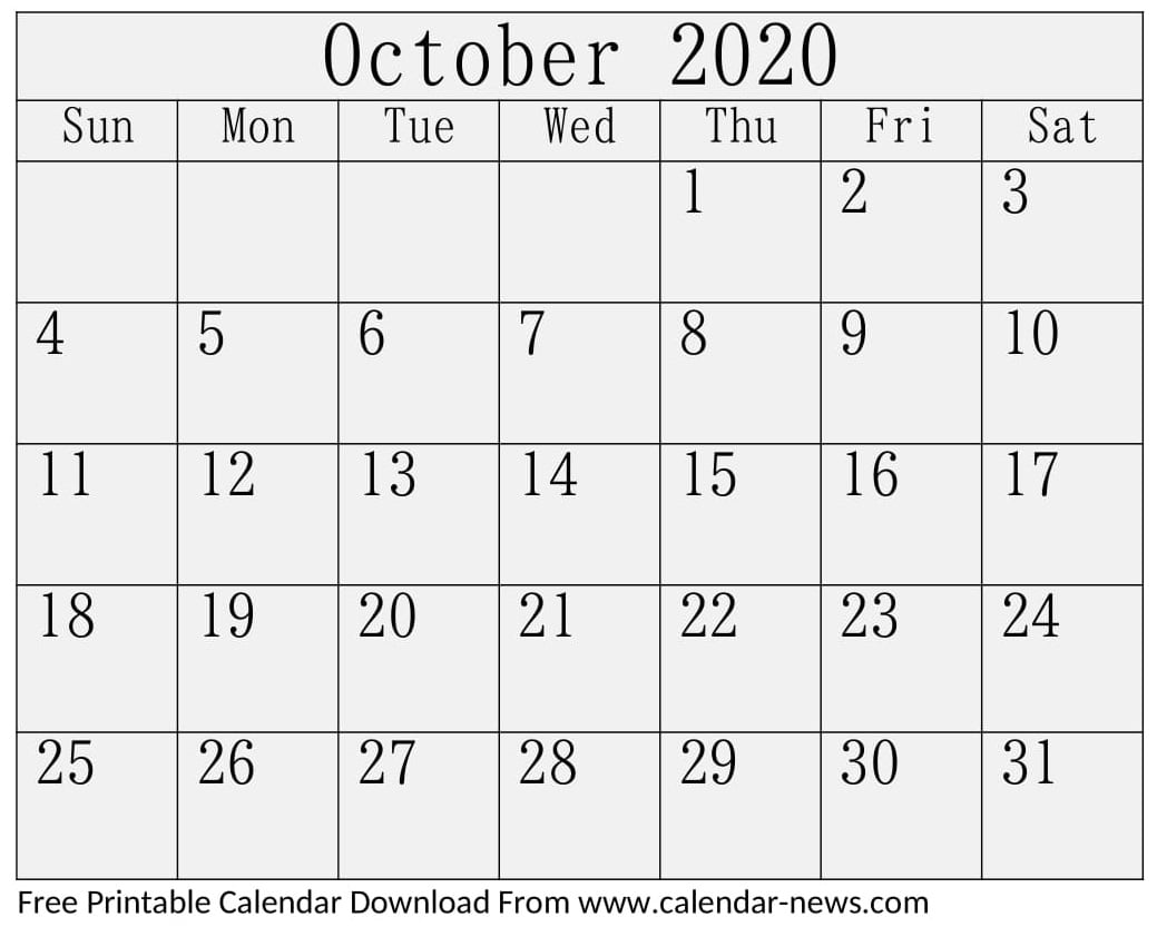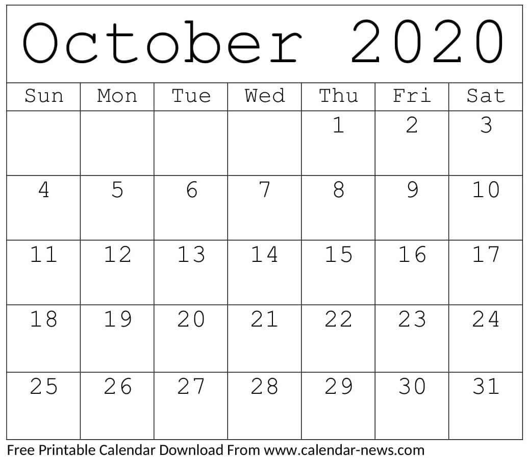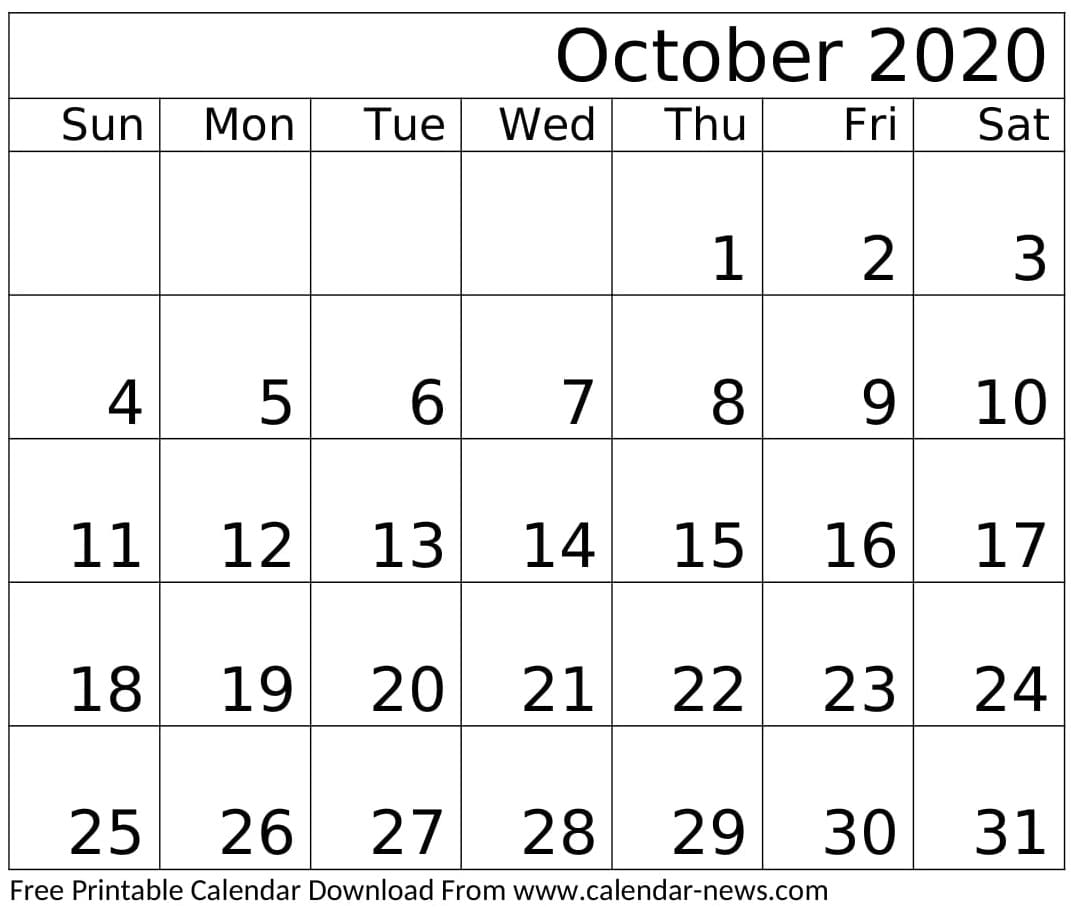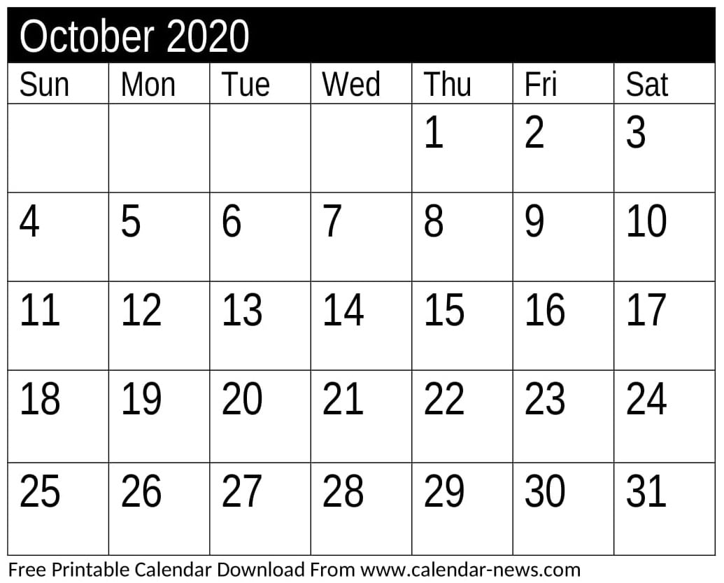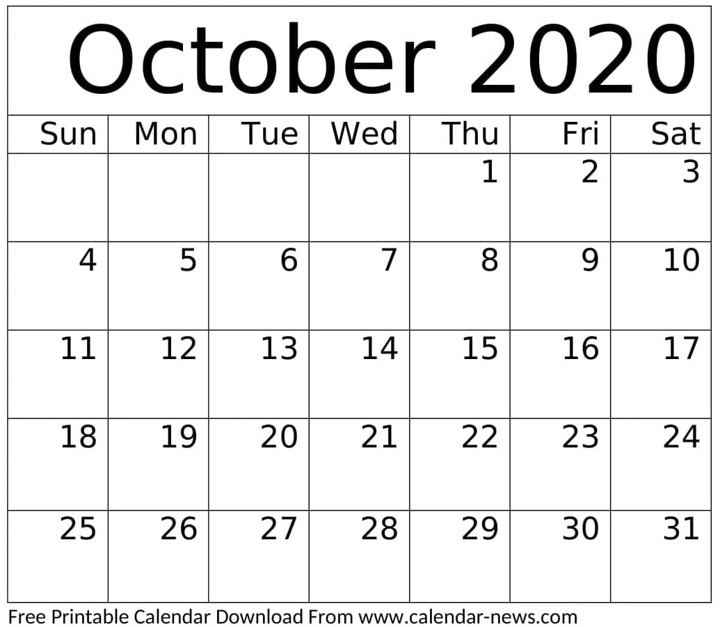October 2020 Calendar